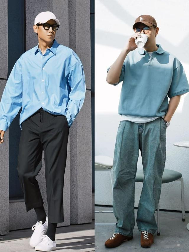 冷色调的衣服对于中年男人来说其实都很友好,相较于自带青春感的绿色,蓝色的衣服更符合成熟男人沉稳的形象,但夏季更推荐大家选浅蓝色,看起来会更清爽,穿在身上也有降温感。