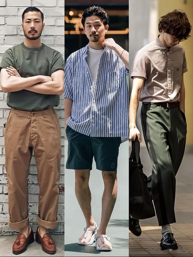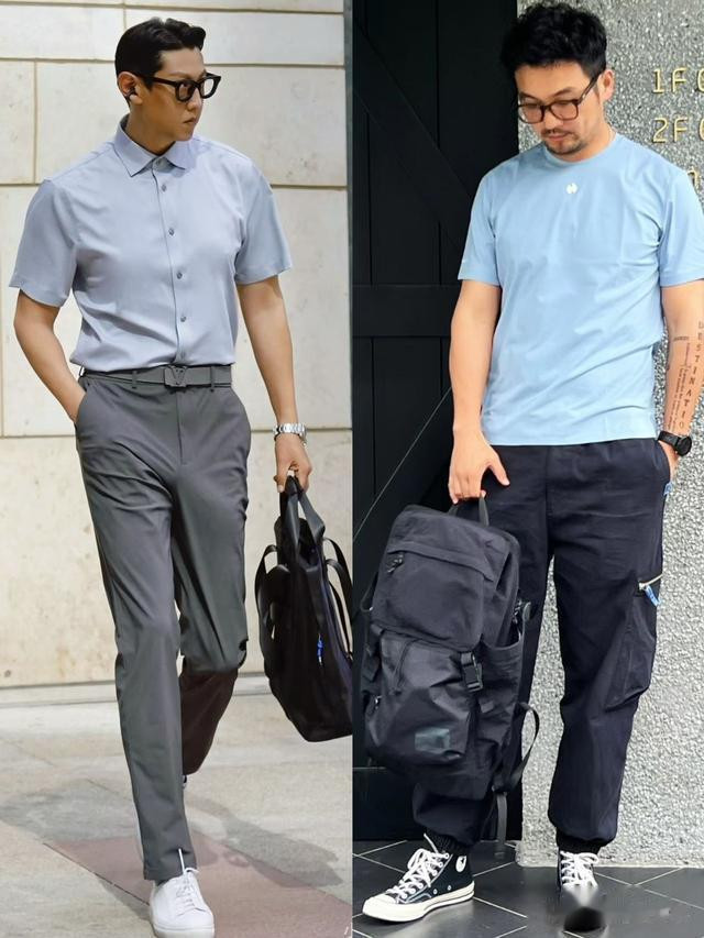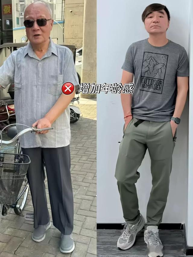 你看下面这些大叔们,穿的深灰色老年衫和T恤,是不是显得整个人有一种疲惫感和年代感?