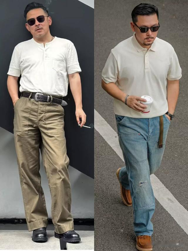 经典米白色为什么适合中年男人?是因为它没有白色那么挑人,也不像黑色那么沉闷,柔和的色调自带高级感。米白色的衬衫、T 恤,都非常适合日常穿,这类衣服只要质感在线,那真的是可以穿好几年,还适用于很多场合,上班穿显得干练利落,休闲时穿又有一种慵懒随性的感觉。